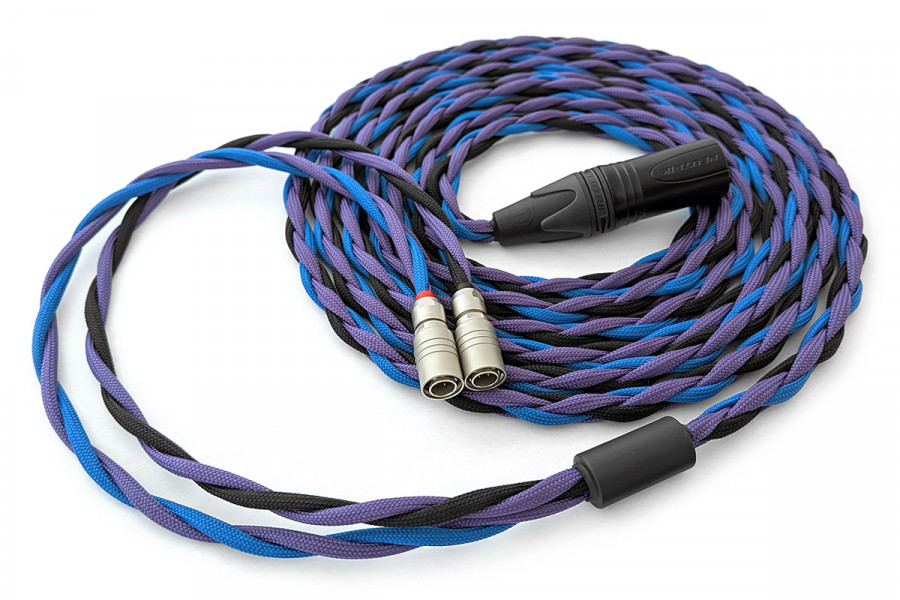 A Mongrel Series audio cable compatible with: Dan Clark Audio (formerly MrSpeakers) Aeon, Alpha, E3, Ether, Expanse and Stealth headphones, by OIDIO SOUND. The headphone connectors are matte silver coloured genuine Hirose with gold plated pins (as of Spring 2026), and have the option for coloured heat shrink left / right marking (please note that the heat shrink colours may not be a perfect match to the cord colours, for example they may appear paler or in a different shade). Also important to note that you should not rotate the headphone end connectors from the base as this could break the cable, they should just push and pull into place using the top half.